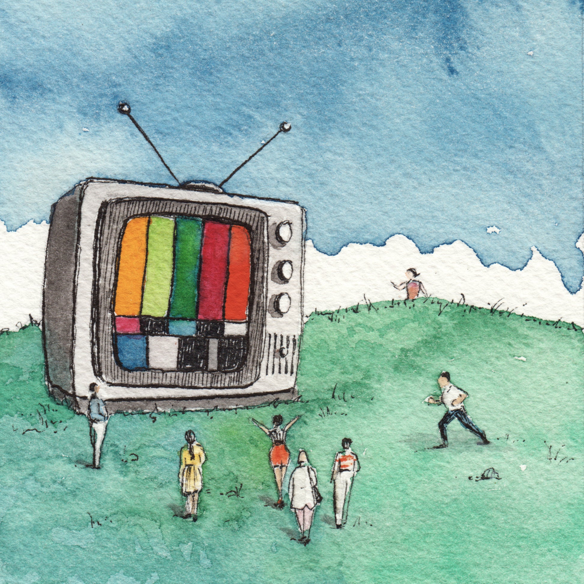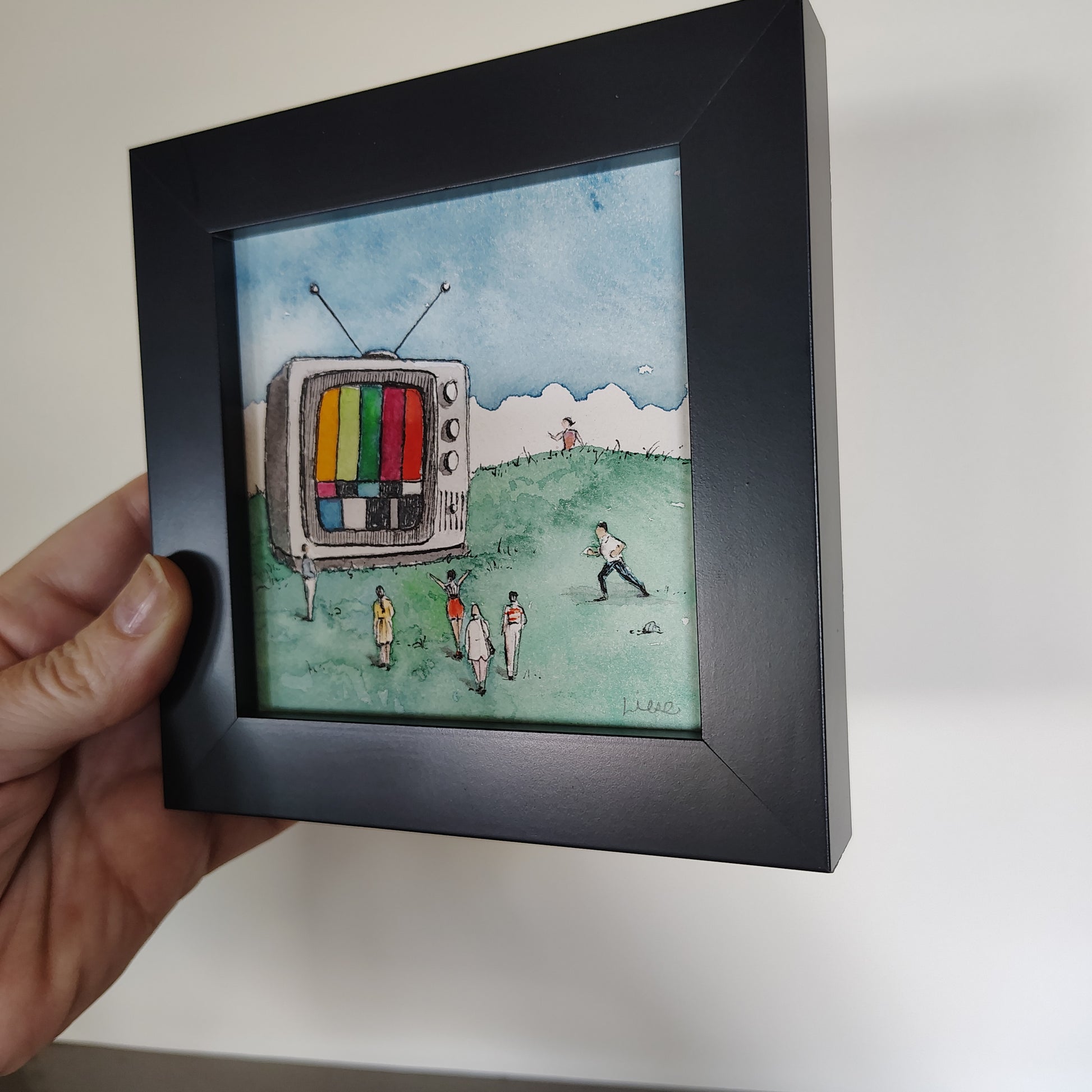Framed Ink and Watercolor on Paper. The painting is about 4x4 inches, the Frame is 5x5 inches. This frame is ready to hang on the wall or sit happily on a shelf.